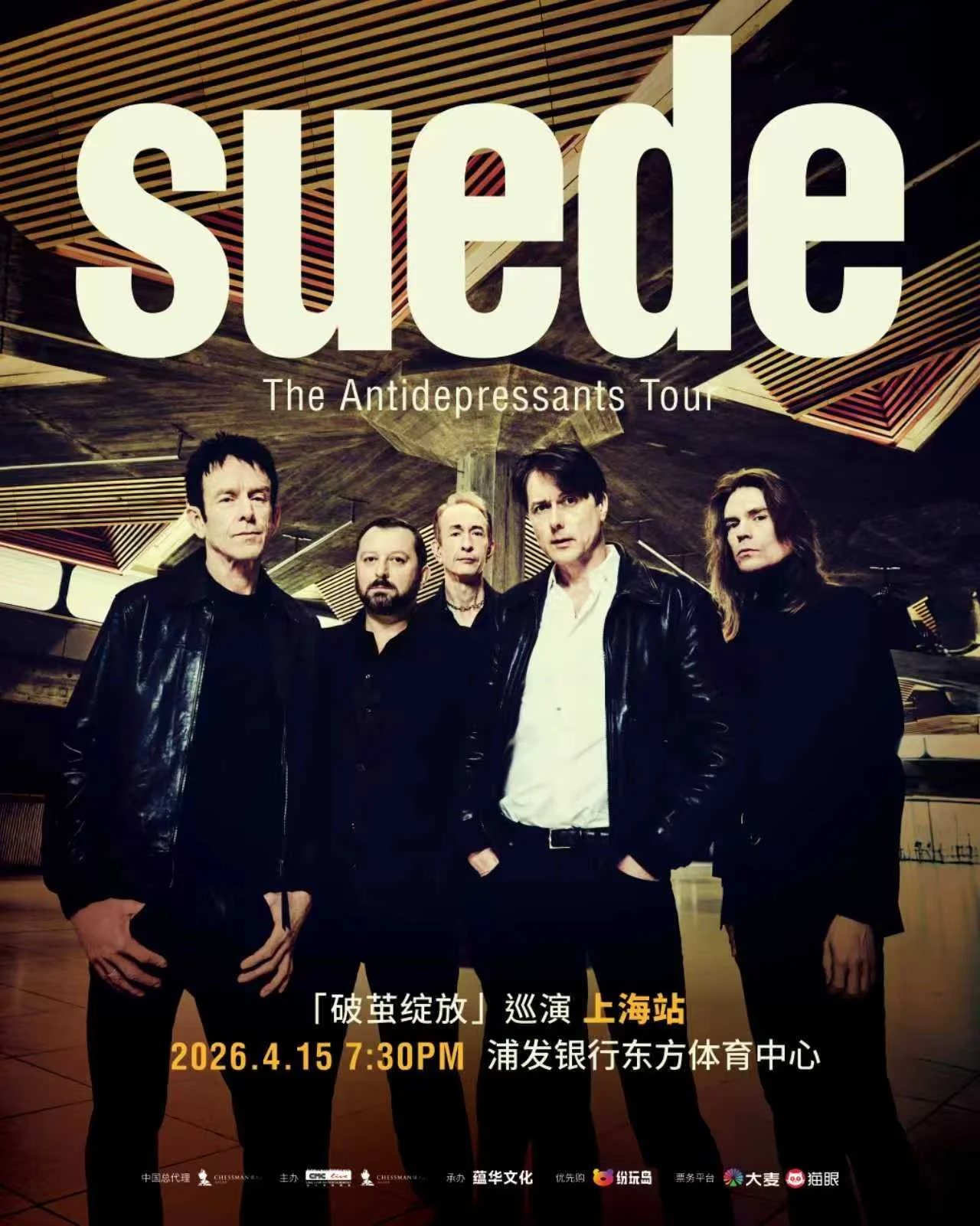 Britpop音樂浪潮來襲!英搖四巨頭之一Suede山羊皮樂隊將於2026年啟動最新巡演《The Antidepressants Tour「破繭綻放」巡演》,一起讓搖滾音樂為你我的靈魂發聲,在狂熱現場中破繭而出,綻放最真實的自我!