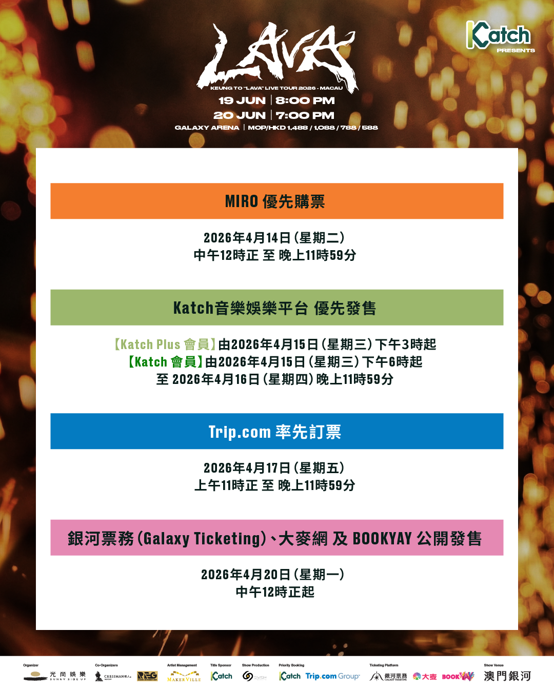《 Katch 音樂娛樂平台呈獻:KEUNG TO “LAVA” LIVE TOUR 2026 - MACAU》售票時間表正式出爐