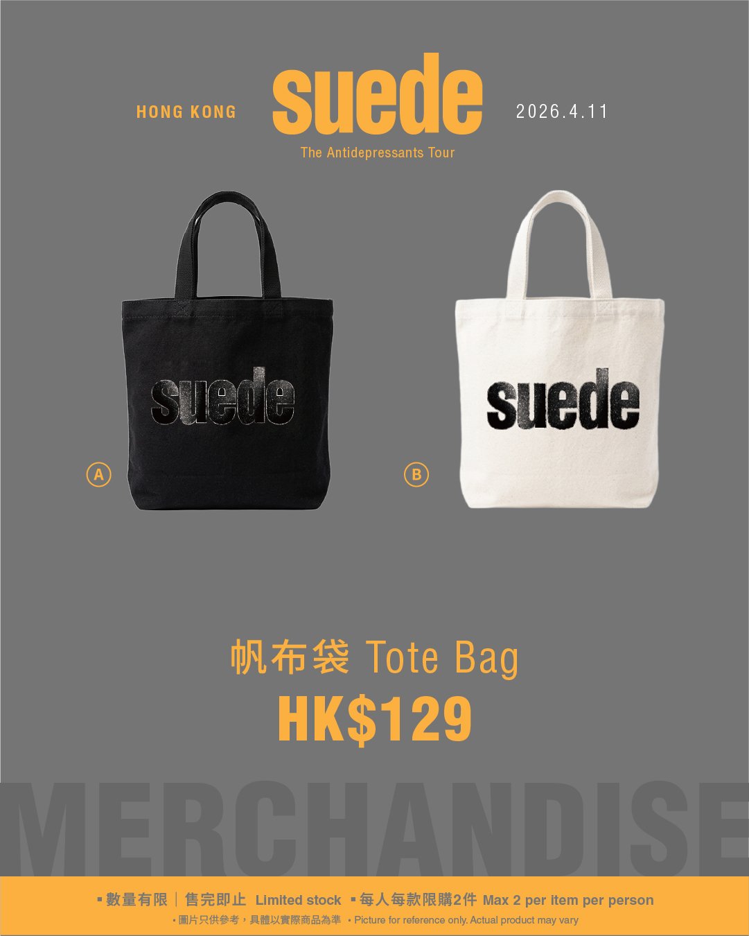 ※演唱會現場取貨服務僅限已購買《Suede The Antidepressants Tour in Hong Kong》門票之觀眾使用。