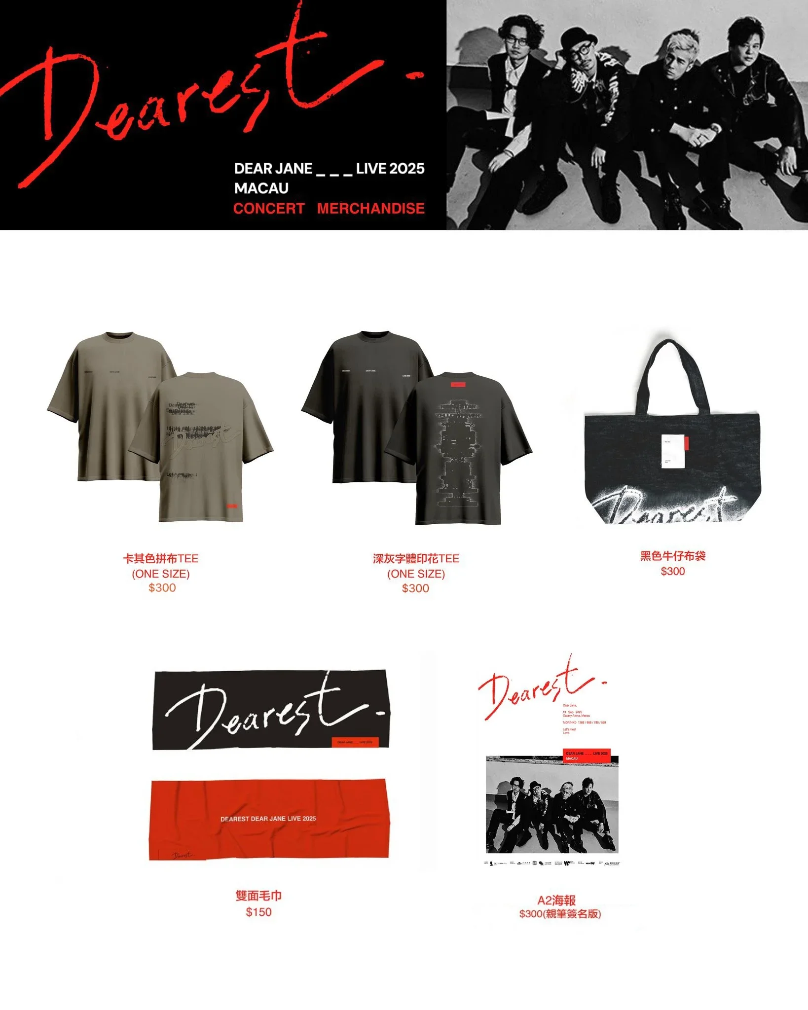 《Dearest Dear Jane Live 2025 in Macau》|澳門站紀念品網上預購